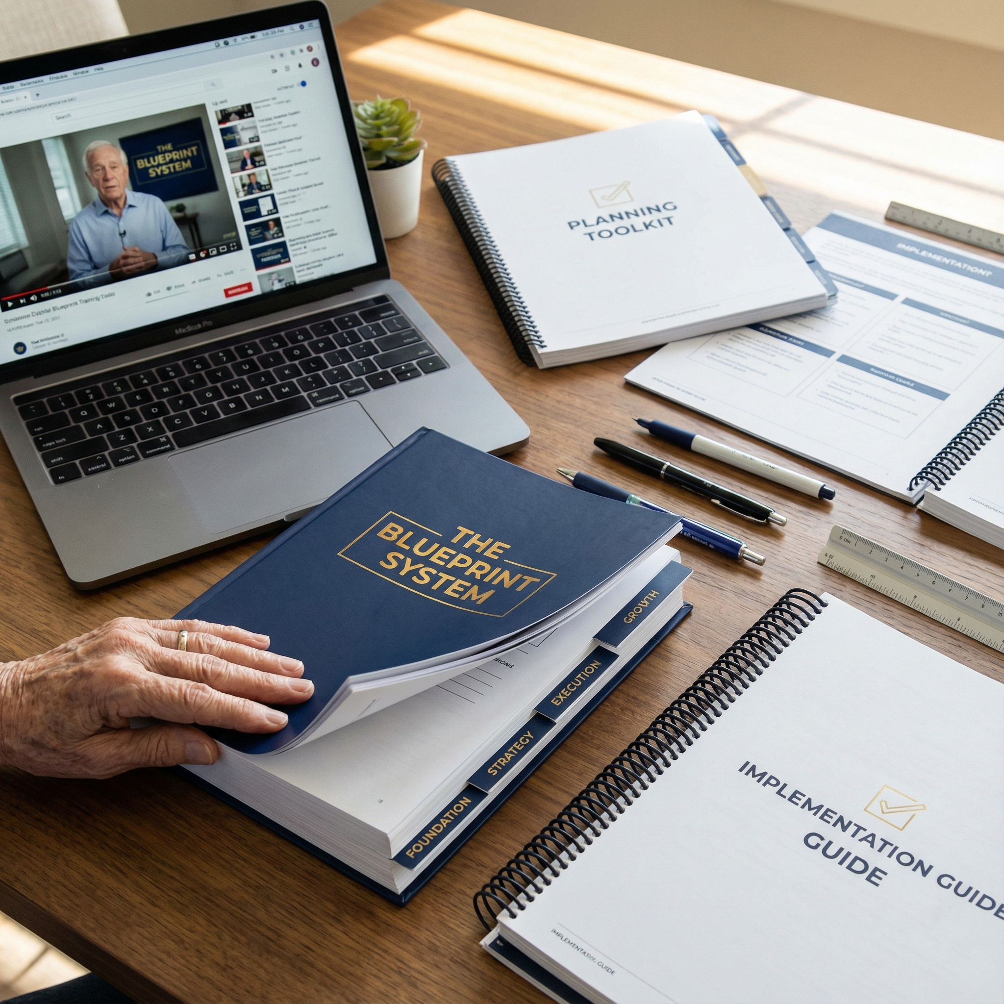 A: The Simple Blueprint is the condensed version with basic frameworks and 15 checklists. The Complete Blueprint is the comprehensive version with deep-dive content, 80 professional tools (not just checklists), video lessons, and lifetime access to all future updates. If you want the full system, this is it.